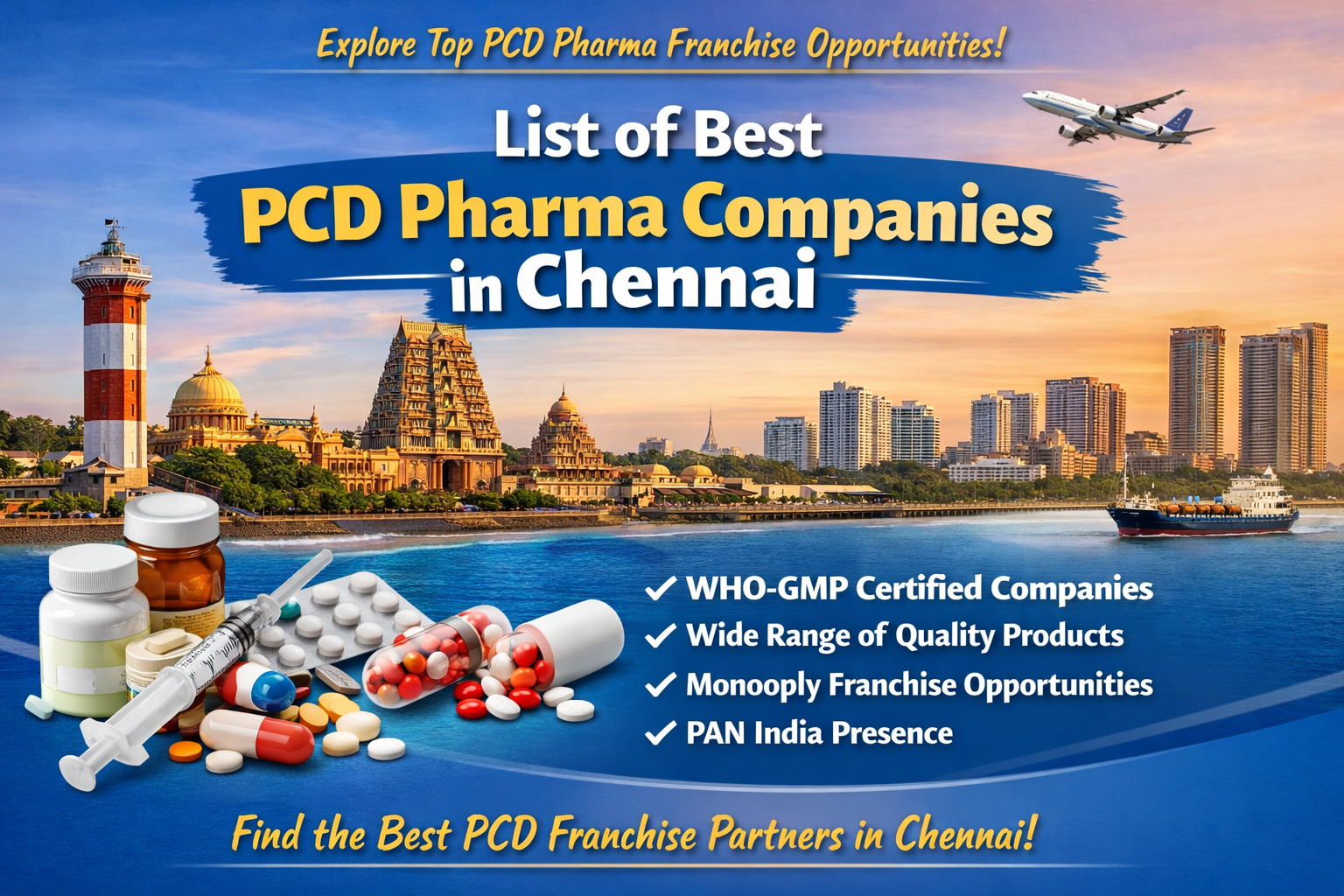 List of Best PCD Pharma Companies in Chennai- Chennai is the core of Tamil Nadu having various industries that support the economy of India and enhance it well. Chennai consists of numerous pharmaceutical companies that deal with the export of medications and drugs overseas to many patients. Many pharma companies in Chennai provide PCD pharma franchise opportunities and monopoly rights to people who want to have a career in the pharmaceutical industry.